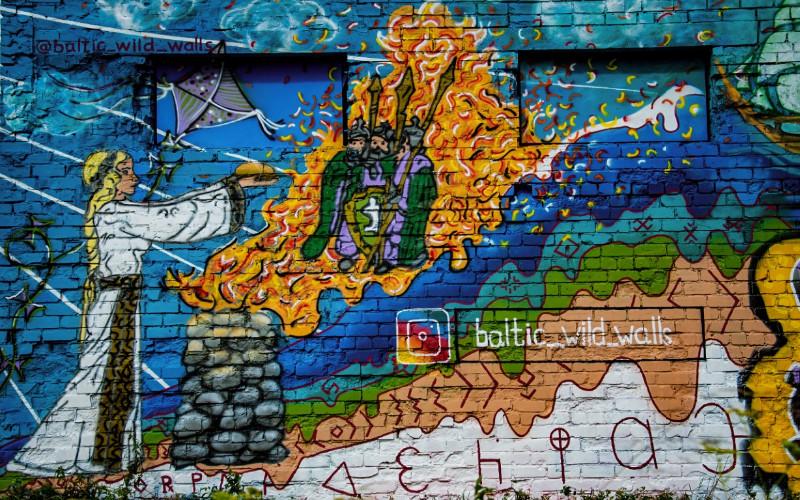 Projekto „Baltų kultūra miesto sienose” sienų tapybos fragmentas. Žilvino Danio nuotr.
