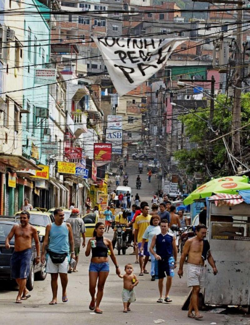 Ant kalvų šlaitų stichiškai statyti Rosinjos lūšnynų kvartalai yra vos vienu kilometru nutolę nuo vandenyno ir garsiojo Ipanemos paplūdimio. Šalia galima išvysti, rodos, nesibaigiančią Rio populiaraus modernizmo stiliaus daugiaaukščių viešbučių kolonadą, gyvenamuosius namus ir kolonijinės architektūros turtuolių vilas, kurias nuo vandenyno skiria garsiojo brazilų architektūros modernisto Oscaro Niemeyerio aveniu. Pačiame Ipanemos paplūdimyje socialinė nelygybė, skirianti lūšnynus ir turtingųjų rajonus, tarsi išnyksta, nes Ipanemos smėlis ir vanduo priklauso visiems.