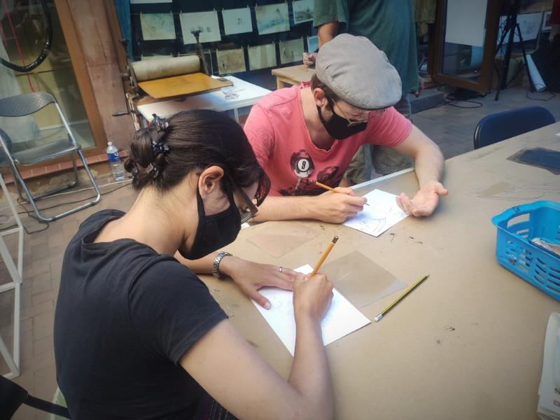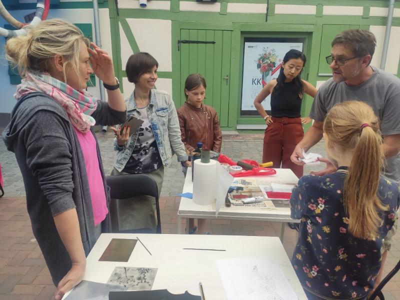 Kasdien į Meno kiemą rinkosi gerai nusiteikusi įvairaus amžiaus publika, kad kartu su profesionaliais menininkais laisvai, be didelių pastangų ir įtampų kurtų grafikos meną. Nors gal ir ne visai tikslu būtų sakyti, kad be įtampos – dirbtuvių dalyvių susikaupimas prie darbų liudijo, kad jie labai rimtai pažiūrėjo į galimybę susipažinti su įvairiomis grafikos meno technikomis ir kartu su lektoriais susikurti savo linoraižinį, monotipiją ar virtuvinę litografiją. Šias pastangas vainikavo kūrybinio išsipildymo džiaugsmas, kurį liudijo švytintys suaugusiųjų, o ypač – mažųjų dalyvių nuo dažų paišini veidai, kai jų darbai buvo atspausti. Atsargiai vyniojo į ritinius ar senus laikraščius pradžiūvusius meno kūrinius, kad parsineštų ir papuoštų namus, ar čia pat glaudė prie krūtinės marškinėlius su ką tik atspaustu grafikos darbu, kad galėtų įsiamžinti fotosesijoje.