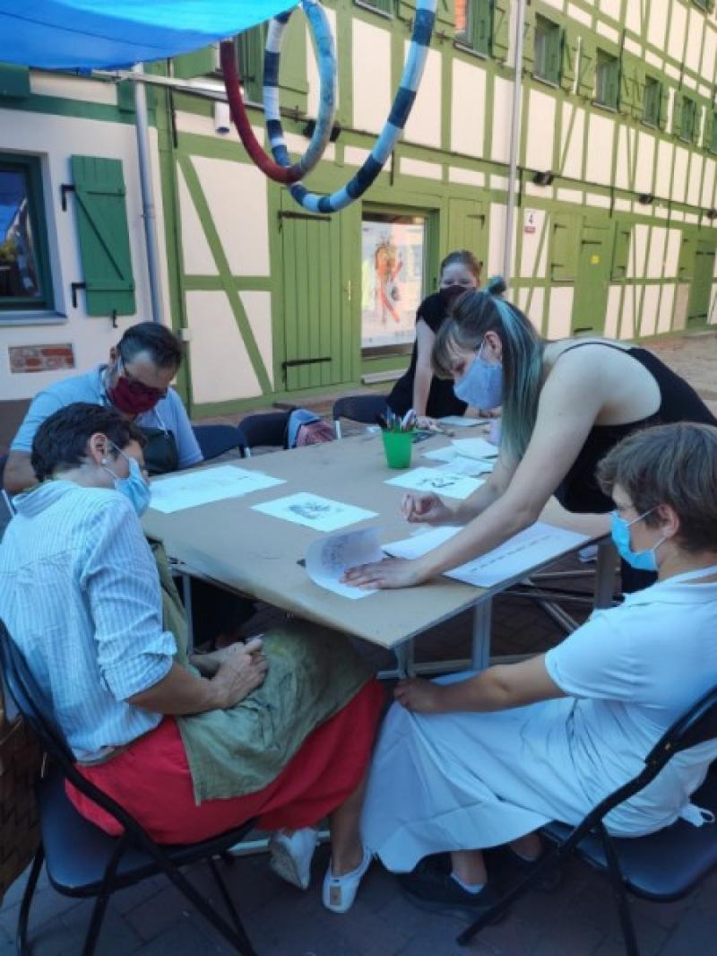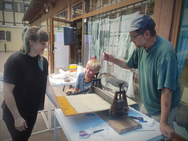 Iš Vilniaus atvykusi jaunoji grafikė Živilė Minkutė kūrybinėse dirbtuvėse dalyvavo tris dienas. Menininkė prisipažino, kad iš pradžių būta šiek tiek streso, nes „susidomėjusių daug, norisi visiems padėti, pakalbėti, paaiškinti. Bet žmonės labai savarankiški”.