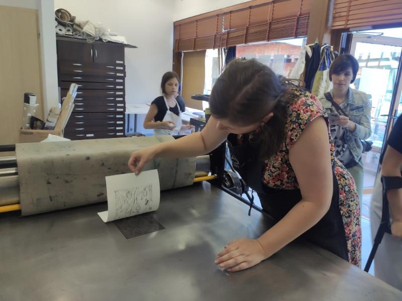 Kūrybinėse grafikos dirbtuvėse „Now Art. Atgimimas“ su menininke Toma Šlimaite-Bubeliene. Agnės Tumšienės nuotr.