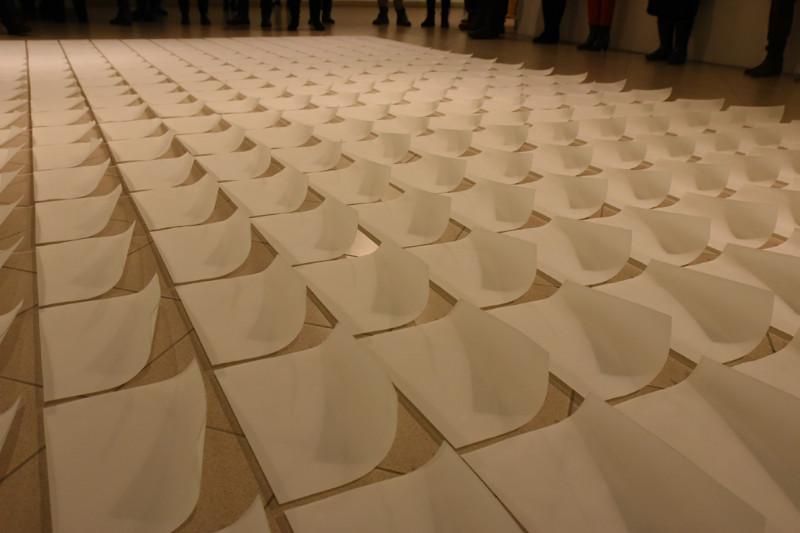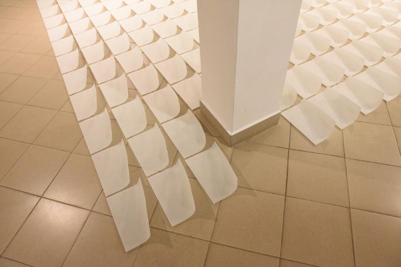 Nors darbai tik keturi, eksponatų – daug: instaliaciją „Nepasakyti” sudaro 380 itin plonų A4 formato popieriaus lapo dydžio matinio stiklo lakštų, simetriškai suguldytų ant parodų salės grindų. Tai centrinė ekspozicijos dalis, kurios tarsi egzistencinio šiurpo pašiaušti stiklo objektai nestokoja filosofinių poteksčių. Geriau įsižiūrėję pamatytume, kad minimalistinė estetika yra įsišaknijusi kiekviename šios didžiulės erdvės lopinėlyje. Kaip saulės (arba mėnulio) baterijos, atsuktos į slaptą alternatyvios energijos šaltinį, šie lakštai, turėdami nežymų paaukštinimą apačioje, lengvai levituoja virš parodinės erdvės grindų. Vaizdas – trapus, patrauklus, įspūdingas.
