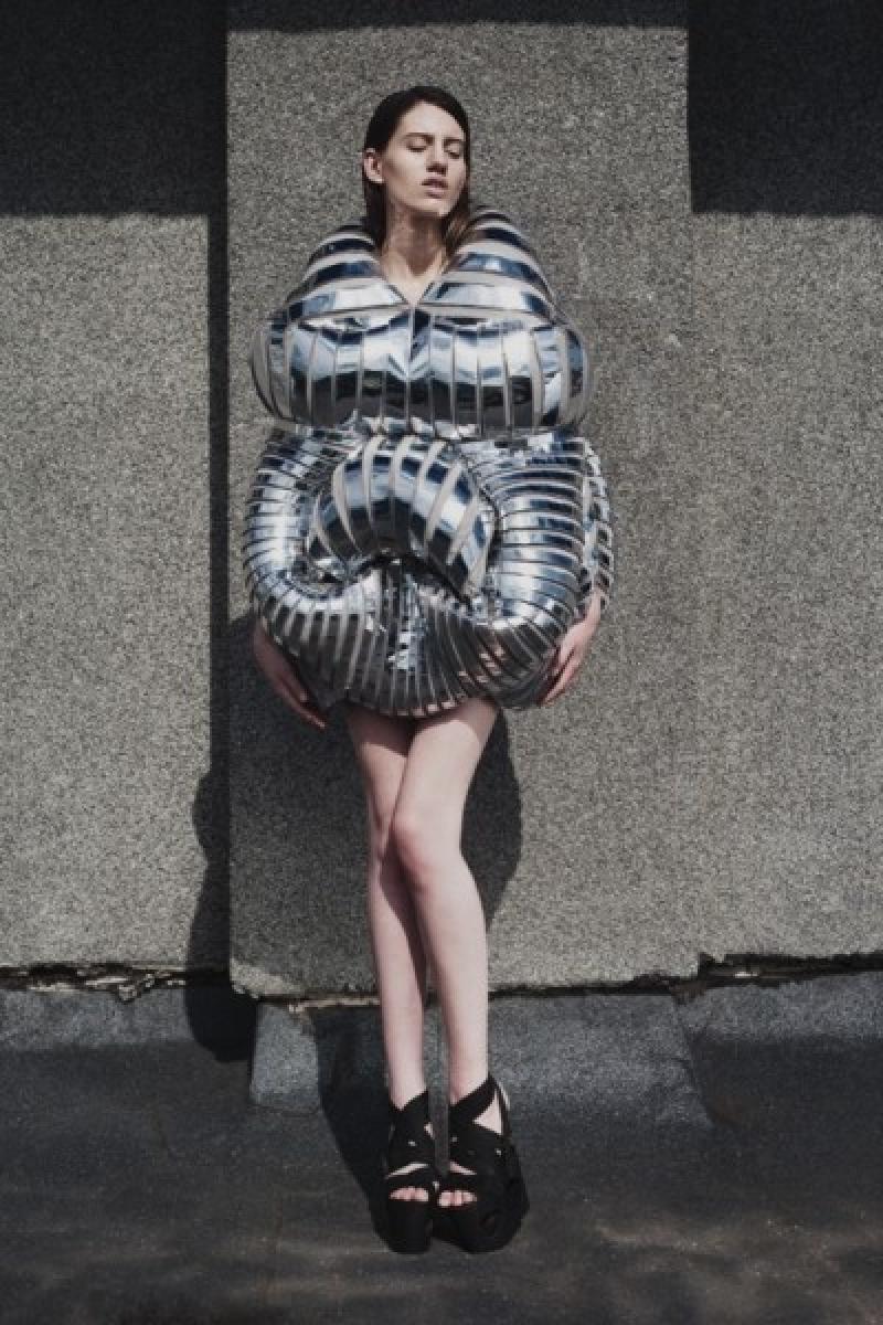 Laikas akių pratimams, nes lietuviškos mados kraujotakos sistemoje pagausėjo šviežio kraujo. Jaunieji Vilniaus dailės akademijos (VDA) kostiumo dizaino bakalaurai demonstruoja kaip niekad kietus kūrybiškumo raumenis ir ne tik akademijos pasieniuose, bet ir už įstaigos ribų – ant podiumų ir dizaino parodose. Be to, jie su savo kuriama mada puikiai išsilieja interneto socialinėje erdvėje. Pagaliau visi suprato, kad interneto žiūrovams nebegalima draskyti akių prastos kokybės mados fotosesijomis, kad madą reikia komunikuoti, o diplominės kolekcijos yra kuriamos ne tam, kad sukūręs „beleką“, galėtum treptelt koja prieš išeidamas iš „akadės“, o tam, kad pats sau pasidarytum pirmąjį rimtą mados projektą, kuris gali tapti (ir turėtų tapti) kiekvieno jauno dizainerio autoriniu start-up‘u. .:. Kolekcija „Kelionė. 83′ – 13’“ (diz. Liucija Kvašytė) Pagrindinį šių metų „Jaunojo dizainerio prizą“ mados kategorijoje laimėjusi dizainerė Liucija Kvašytė yra viena įdomiausių kūrėjų iš pastarųjų metų mados bakalaurų. Rugsėjį savo ultraalpinistinę kolekciją Liucija pademonstravo ir Londono dizaino festivalyje, kai tuo metu Lietuvos kultūros atašė Londone Liucijos sukurtas kuprines ėmė ir užsidėjo ant savo oficialios paskyros viršelio facebook‘e. Taigi, socialinė komunikacija tinkle gerą dizainą netikėtai pakėlė net į diplomatinį lygmenį. Pati dizainerė sako, kad kurdama šias įspūdingas kuprines ir vyriškus drabužius nagrinėjo žmogaus harmonijos ir aplinkos problematiką. Jos tyrimo objektas – tėvo ir dukters santykiai, vaizduojami per autoriteto – tėvo – paveikslą, sukuriant jam idealizuoto personažo, alpinisto, įvaizdį. Kolekcijoje dera senas braižas ir inovatyvūs sprendimai, atsispindi pagarba paveldui ir atsakingas požiūris į šiandienos iššūkius. Tai seno ir naujo dermė, kartų problematika, harmonijos su aplinka bei aplinkiniais paieškos, santykių puoselėjimas, vertinimas ir padėka tėčiui, kuris, beje, tapo ir pagrindiniu šios kolekcijos modeliu. Luko Keiziko nuotr. .:. Kolekcija „CosmoJesus“ (diz. Ugnė Martinaitytė) Jaunoji futuristė Ugnė Martinaitytė, jau spėjusi „prasinešti“ per „Mados infekcijas“, už eksperimentinę kolekciją „CosmoJesus“ šiemet gavo nacionalinės svarbos „Gero dizaino“ prizą tiesiai iš prezidentės Dalios rankų. Prieš pradėdama kurti drabužius, Ugnė studijavo industrinį ir grafinį dizainą, kol galiausiai nematomos srovės ją nuvedė į VDA kostiumo dizaino katedrą, kur ir gimė „CosmoJesus“. Tai mišri vyrų bei moterų kolekcija, inspiruota kosmonautų kostiumų, krikščionybės ir dangaus simbolių samplaikos. Kolekcija sujungia priešingybes: materialų ir dvasinį pasaulius. Labiausiai pasaulyje paplitusi religija – krikščionybė – ne tik kalba apie stebuklus, bet ir turi sąsajų su kosmosu. Dangaus simboliai krikščioniškose ikonose ir šiandieninis kosmonautas yra centrinis dizainerės interesų objektas. Aureolė (nimbas) virš šventųjų galvų – tarsi apsauginis kosmonauto skafandras. Kosmonautas, skrendantis į kosmosą ieškoti mokslinio visatos atsiradimo paaiškinimo, meldžiasi Dievui. Kolekcijos idėją atskleidžia teiginys: krikščionybė – kosmosas, o Jėzus – kosmonautas. Kolekcijoje šios temos interpretuojamos su ironija, jungiant stereotipinius krikščionybės ir kosmoso simbolius į vieną įvaizdį, kuris atskleidžia šiuolaikišką požiūrį į tikėjimą. Tomo Adomavičiaus ir Agnės Solovjavaitės nuotr. .:. Kolekcija „M e s s a g e s t o A n o n y m o u s“ (diz. Melita Rus) VDA kostiumo dizaino bakalaurė, aksesuarų dizainerė Melita Rus (mados ženklas MELLOW) sako, kad ši kolekcija – apie KOMUNIKACIJĄ. Devyni skirtingi drabužių modeliai iš tikrųjų yra neįprasta žmonijos komunikacijos istorijos retrospektyva, įlindusi į mados kailį, netgi pasislėpusi po tikra oda. Nuo pašto balandžių, tradicinio pašto iki elektroninio emailo ir šių dienų komunikatorių radikalų – anonimų, kurie siunčia žinutes anonimams interneto socialiniuose tinkluose. Informacijos perdavimo būdai keičiasi, bet jos poreikis – ne. Visai kaip ir mada. Siekiant išryškinti praeityje egzistavusios rašytinės komunikacijos tikrumą ir nuoširdumą bei jos priešpriešą – sintetinę internetinę komunikaciją ir jai būdingą netikrumą bei anonimiškumą, kolekcijoje jungiami natūralūs ir sintetiniai audiniai. „Ffakers“ nuotr. .:. Kolekcija „Wafuku“ (diz. Paulė Insodaitė) Japoniški-lietuviški „treningai“! Gal skamba ironiškai, bet jie tikrai geri. Wafuku – tai japoniškas žodis, reiškiantis japonišką stilių arba tradicinius japoniškus drabužius. Akivaizdu – pagrindinė kolekcijos inspiracija yra Japonija, tiksliau, japoniški audiniai, jų raštai ir motyvai. Kolekcija yra komercinė, todėl dizainerės tikslas buvo sukurti nešiojamų (pranc. prêt-à–porter) vyriškų laisvalaikio drabužių kolekciją, atspindinčią japonų kultūros įtaką vakarietiškai kultūrai. Tad antrąja jos inspiracija tapo vyrų gatvės mada, laisvalaikio apranga – patogi ir laisva, visai kaip treningai. Trečiasis elementas, panaudotas kuriant kolekciją, yra mistinis šešiakampis. Šešiakampio forma naudojama konstrukcijoje, jungiant ir derinant skirtingus raštus, kurių iš viso yra dešimt, bei du paveikslus. Šešiakampis simbolizuoja dviejų kultūrų ir laikmečių susijungimą, tai senovinių, XVIII-XIX amžių japoniškų raštų ir šiuolaikinės vyriškos mados sintezė. Šešiakampis taip pat yra forma, kuri tiek gamtoje, tiek senovinėje simbolikoje, tiek šiuolaikinėje architektūroje, mene ar žmonių sukurtuose daiktuose sudaro įvairias struktūras – taip, kaip šioje kolekcijoje sudaro drabužius. Visi audiniai atspausdinti sublimacine spauda. Paulės Insodaitės nuotr. .:. Kolekcija „Home_LT“ (diz.