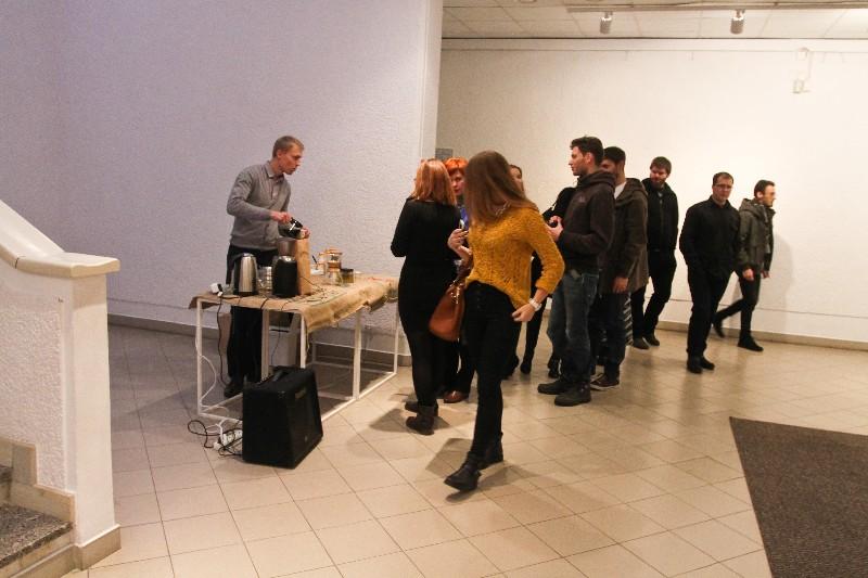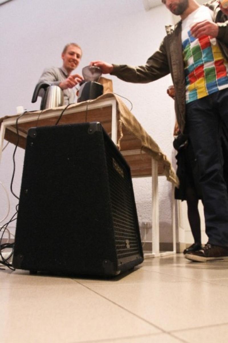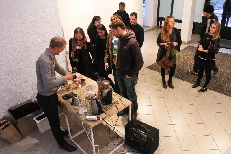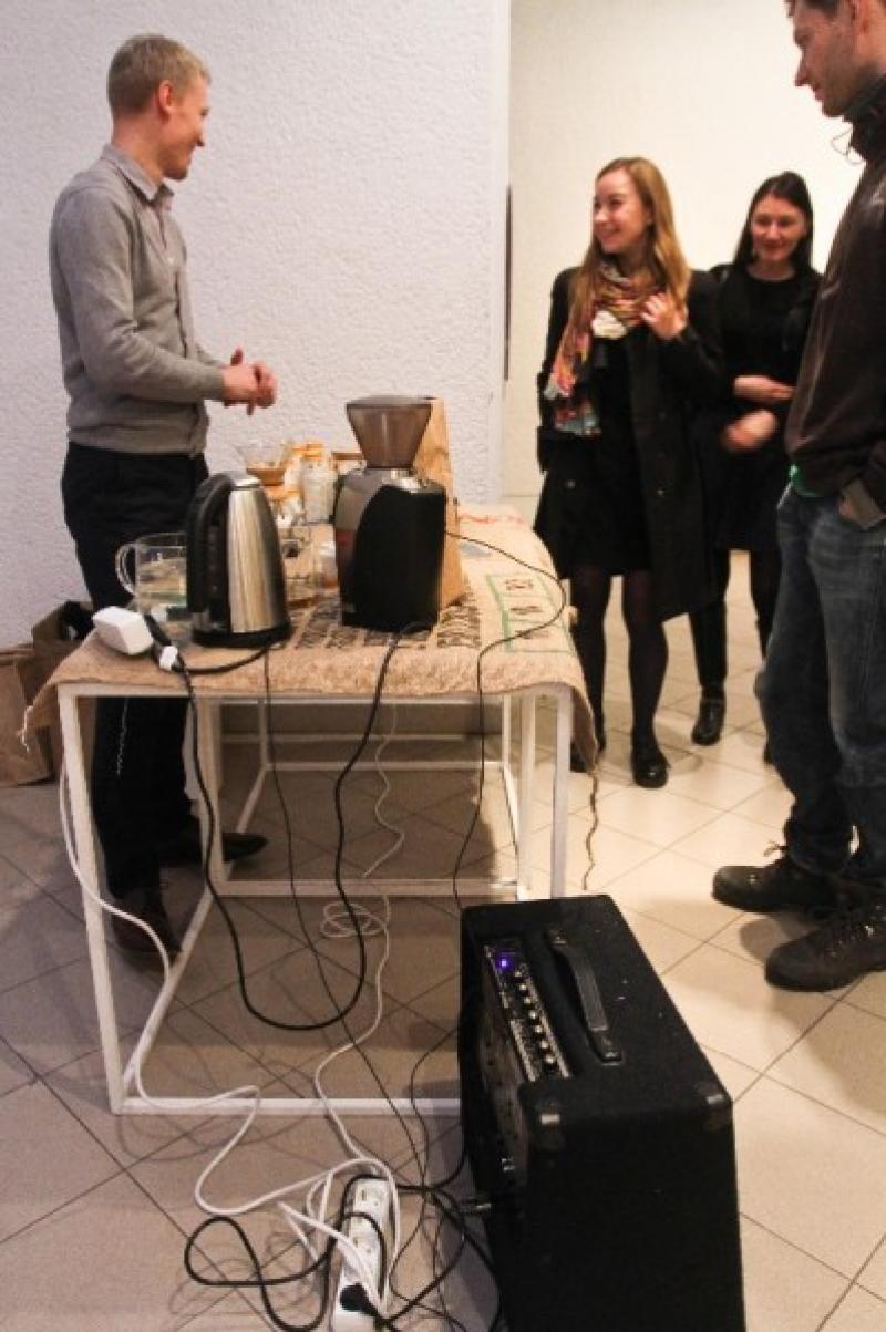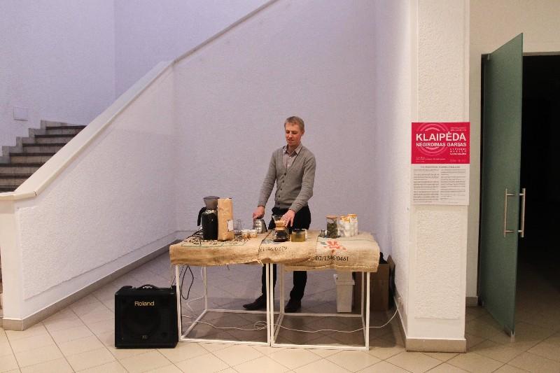 ![]() Per pertraukas ruošiamos kavos kvapais, skoniais ir garsais improvizavo vienas iš kavinės „Kavos architektai” įkūrėjų architektas Vytautas Alšauskas. Nerijaus Jankausko nuotr. Daugiau informacijos apie projektą: https://www.facebook.com/donatas.bielkauskas/media_set?set=a.1182981441730803.1073741866.100000568747697&type=3&pnref=story |