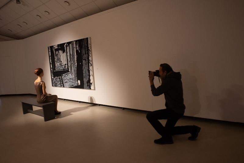 KKKC Parodų rūmuose (Didžioji Vandens g. 2, Klaipėda) iki 2019 m. lapkričio 10 dienos veikia Pietro Finelli (Italija) paroda „Noir Time”. Pietro Finelli kūryba tyrinėja klasikinio kino žanrą, vadinamąjį film noir (pranc. juodasis kinas). Šis kino terminas naudojamas apibūdinti 1940–1950 m. sukurtoms Holivudo kriminalinėms dramoms. Parodoje „Noir Time” menininkas, remdamasis noir kino struktūra ir estetika, perpina tapybą ir kino kadrus taip, kad tampa nebeaišku – kur baigiasi filmas ir prasideda tapyba, ir atvirkščiai. „Mano tapyba yra labai daugiakalbė ir daugiaprasmė. Ji paimta iš įvairių klasikinių filmų, kurie parodo, kokia yra kino meno estetika. Būtent ji mane labai domina. Nes šiuo laikotarpiu filmai turėjo labai daug įžvalgų, sąsajų ir panašumų su tapyba. Mane tai labai žavi”, – pristatydamas parodą sakė Pietro Finelli. Su noir žanru siejamas ir femme fatale personažas. Be jo neapsieita ir pristatant parodą „Noir Time”. Beveik dviejų valandų trukmės performanso metu lankytojai salėje matė ant suoliuko priešais kūrinį sėdinčią ir įdėmiai jį stebinčią jauną moterį, tarsi nužengusią iš P. Finelli drobių: tiesi nugara, liaunas kūnas, aptemptas aukso spalvos suknele, ir sustingęs žvilgsnis, įsmeigtas didelio formato drobę. Fatališkoji moteris tarsi kvietė lankytojus prisėsti šalia. Ne vienas taip ir pasielgė. Parodos autorius to ir siekė – kad žiūrovas nebūtų vien pasyvus stebėtojas. Prisėdęs greta šios moters, jis kuriam laikui tarsi tapdavo ekspozicijos dalimi, kartu atnaujindamas visą sudėtingą ekspozicijos erdvės ir laiko vaizdinę dinamiką. Pietro Finelli paroda „Noir Time” veiks iki 2019 m. lapkričio 10 d. |