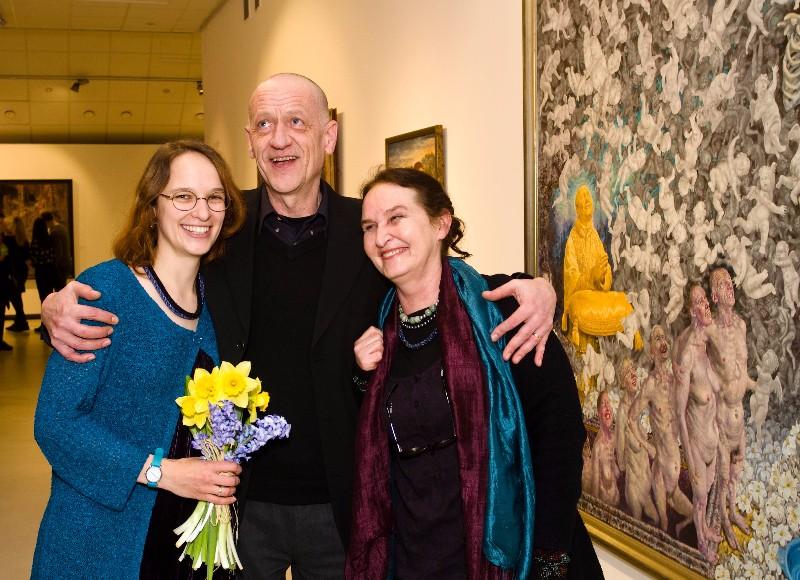 Klaipėdos kultūrų komunikacijų centro (KKKC) Parodų rūmuose atidaryta ilgai laukta kontroversiška, daugybės atgarsių jau sulaukusi Šarūno Saukos tapybos paroda „Žmogus su Saukos veidu”. Vieno savičiausių, labiausiai išsiskiriančių, žinomiausių lietuvių tapytojų, Nacionalinės premijos laureato Š. Saukos retrospektyvinėje parodoje eksponuojama per 60 tapybos darbų, sukurtų 1978–2015 m. Prieš tai paroda buvo eksponuota Nacionalinėje dailės galerijoje Vilniuje ir sulaukė daugiau kaip 44 tūkstančių lankytojų. „Tai yra paroda, kuri negali tavęs nepakeisti, kuri negali nepadaryti įtakos. Tai drąsi, subtili, kartais aštroka provokacija, kuri yra ne tam, kad ką nors supykdytų ar įžeistų, bet kad pažadintų norą mąstyti, susivokti”, – parodos pristatymo metu sakė Klaipėdos meras Vytautas Grubliauskas (nuotraukoje – dešinėje). „Ši paroda atspindi ryškiausius beveik 40 metų trunkančios Š. Saukos kūrybos motyvus. Paveikslai pristatomi kaip vientisas jo kūrybos pasaulis, vaizduojami personažai, vietovės, ritualiniai įvykiai net pasikartodami įgyja naujų prasmių”, – pristatydamas menininko vernisažą pažymėjo KKKC vadovas menotyrininkas Ignas Kazakevičius (kairėje). Pats tapytojas Š. Sauka kalba mažai – šią misiją jis perleidžia savo dukrai menotyrininkei Monikai Saukaitei. Tačiau šiai dėkojant KKKC kolektyvui už nuoširdžią pagalbą rengiant parodą, menininkas neišvėrė ir įsiterpė: „Ir aš esu labai dėkingas už tai. Ir visai Klaipėdai dėkingas!” Kuratorė Monika Saukaitė, pristatydama parodą, pasidžiaugė, kad Nacionalinėje dailės galerijoje Vilniuje ją apžiūrėjo labai daug žmonių, ir vylėsi, kad, atvežus ją į kitą Lietuvos galą, paroda sutrauks tuos meno mėgėjus, kurie neturėjo galimybės nuvažiuoti iki Vilniaus. „Mes su autoriumi, sužinoję, kiek žmonių ateina, negalėjome patikėti, kad žmonės domisi menu, mėgsta tokį keistą meną, kuriame iš tiesų nėra viskas taip paprasta, kai reikia pastovėti ir pagalvoti, įsižiūrėti į kiekvieną paveikslą, nepabijoti kartais drastiškų siužetų ir pabandyti į juos pasižiūrėti kitaip. Labai džiaugiuosi, kad paroda atkeliavo į Klaipėdą ir tokiu būdu prasitęsė jos gyvavimo laikas”, – sakė M. Saukaitė. Sekmadienį miesto visuomenei buvo sudaryta galimybė apžvelgti parodą, daugiau sužinoti apie charizmatiškąjį menininką ir jo kūrybą iš jo dukros ir parodos kuratorės Monikos Saukaitės. Ji siūlė lankytojams nebijoti pasijuokti, atrasti detalių, kurios apie gyvenimą pasakoja šiek tiek komiškai, juokiasi iš įvairių kompleksų, gyvenimiškų situacijų. Anot jos, pats autorius dažnai pasijuokia ir iš savęs, ir iš to žiūrovo, kuris stovi priešais jį. „Norėčiau pakviesti atėjus į parodą nusikratyti išankstinių nuomonių ir pabandyti susitikti su paveikslais asmeniškai, taip, kaip jūs juos matote, nebijoti savų interpretacijų, nebandyti būtinai išsiaiškinti, ką autorius norėjo pasakyti, bet laisvai žiūrėti ir tikėti, kad kiekvienas žvilgsnis ir kiekvienas matymas yra vienodai teisingas”, – parodos lankytojams pataria M. Saukaitė. „Nereikia galvoti, kad tas žmogus su Saukos veidu yra pats autorius ir kad autorius pasakoja apie save. Tas veidas iš tiesų yra naudojamas labiau kaip kaukė, kuri leidžia pasakoti apie labai įspūdingus personažus. Parodoje matysite, kad net ir Kristus, ir Poncijus Pilotas užsidėję tą patį veidą kaip kaukę, kitur ir moters kūnas su tuo pačiu veidu. Tai leidžia suprasti, kad iš tiesų autorius nepasakoja apie save, nėra toks narciziškas, – jam tas veidas, visada esantis po ranka, leidžia pasakoti apie įvairiausius dalykus”, – apie tėvo parodą sakė M. Saukaitė. Paklausti, ar netenka pyktis renkant darbus parodai, dailininkas su kuratore ima juoktis. „Žinoma, kad pykstamės. Monika nori rodyti vienus darbus, aš – kitus, – patvirtina menininkas ir patikslina: – Aš noriu duoti parodai naujus darbus, Monika renkasi kitus…” Tačiau abu vienbalsiai patvirtina, kad kompromisą visada randa. Šarūno Saukos tapybos paroda „Žmogus su Saukos veidu” veiks iki 2016 m. gegužės 8 d. |