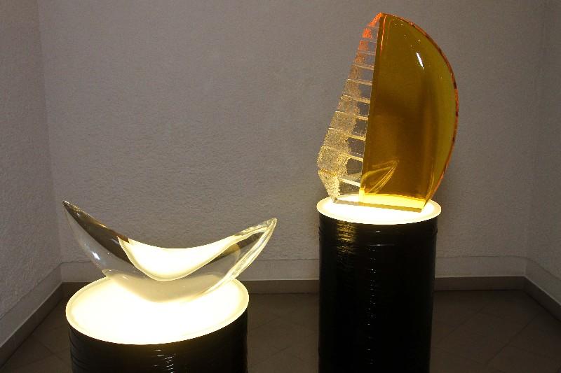 Klaipėdos kultūrų komunikacijų centro Parodų rūmuose (Didžioji Vandens g. 2) penktadienio vakarą buvo triukšminga – tratant būgnams čia atidaryta Indrės Stulgaitės-Kriukienės ir Remigijaus Kriuko meninio stiklo paroda „Švytėjimas”. Stiklo menininkai iš Panevėžio su savo darbais jau apkeliavo beveik visą Europą – jie aktyviai dalyvauja parodose bei kūrybiniuose simpoziumuose, konferencijose, seminaruose, konkursuose Lietuvoje, Latvijoje, Estijoje, Rusijoje, Ukrainoje, Vokietijoje, Suomijoje, Danijoje, Olandijoje, Liuksemburge, Bulgarijoje, Baltarusijoje, Slovakijoje ir kitose šalyse. Jų kūrinių yra įsigiję Frauenau stiklo muziejus (Vokietija), Nacionalinis Lvovo meno muziejus (Ukraina), Lvovo stiklo muziejus (Ukraina), Evald Okas muziejus (Haapsalu, Estija), Suomijos stiklo muziejus (Riihimäki, Suomija), Rusijos dekoratyvinio-taikomojo ir liaudies meno muziejus (Maskva, Rusija), K. A. Savitskio galerijos Penzos filialas Stiklo ir krištolo muziejus (Nikolskas, Rusija), Kuskovo rūmai (Maskva, Rusija). Pastaraisiais metais stiklo kūrėjų pora Indrė Stulgaitė-Kriukienė ir Remigijus Kriukas nusprendė parodas rengti Lietuvoje – anot menininkų, jie nori ir tėvynainiams parodyti, kad stiklas – tai ne tik taurės, vazos ar kiti buityje naudojami indai. Stiklas gali virsti ir meno kūriniu – skulptūra. Į savo parodos atidarymą menininkai pakvietė Kretingos meno mokyklos mušamųjų instrumentų ansamblį, vadovaujamą Viačeslavo Krasnopiorovo. Talentingųjų kolektyvo narių mušami ritmai itin išryškino medžiagos, su kuria dirba menininkai – stiklo – trapumą. Anot R. Kriuko, šį ansamblį, atrastą džiazo festivaliuose, jie pasikvietė tam, kad būgnų garsai primintų stiklo dirbtuvių atmosferą – ten visada labai triukšminga. Stiklo menas – labai specifinė sritis, turinti daug savitų technologinių ypatybių, jau nekalbant apie tai, kad tai ypač kaprizinga medžiaga. Įgyvendindami savo kūrybinius sumanymus, menininkai nuolat eksperimentuoja ir, derindami skaidrius ir šiurkščius paviršius, stengiasi optimaliai išnaudoti šios išskirtinės medžiagos galimybes: optiškumą, skaidrumą, iliuziją. Kadangi geriausioms stiklo savybėms atskleisti privaloma šviesa, rengti ekspoziciją technologiškai gana sudėtinga – reikia surasti geriausią apšvietimo kampą, kryptį, intensyvumą, kad kiekvienas stiklo kūrinys švytėtų. Paroda „Švytėjimas” veiks iki 2015 m. lapkričio 22 d. |