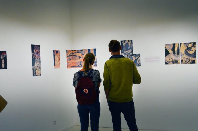 Apie romaną „Vilniaus pokeris” Ričardas Gavelis sakė, kad kitos tokios knygos neberašys – esą nenorėtų dar kartą lįsti į tokius pragarus, kuriuos aprašė. Gavelio pragaras, atrodo, nė kiek negąsdina Gretos Alice, kuri pagal šį romaną iliustracijas kuria jau nuo studijų laikų. Birželio mėnesį Klaipėdos kultūrų komunikacijų centro (KKKC) Parodų rūmuose atidaryta jos piešinių paroda „Vilniaus pokeris”. Kaip į tavo rankas pateko Ričardo Gavelio romanas ir ar prisimeni, koks buvo pirmas knygos vaizdinys, kurį nusprendei perteikti iliustracija? Puikiai atsimenu momentą, kai paėmiau šią knygą į rankas senų knygų knygynėlyje Tiltų gatvėje. Pirmasis įspūdis, gal dėl keistoko juodo viršelio ar pavadinimo, buvo kiek dviprasmiškas, bet jau įpusėjus pirmąjį puslapį pajutau begalinį artumą ir smalsumą. Ričardo Gavelio kuriamas miesto vaizdas, jo atmosfera bei veikėjų daugiasluoksniškumas negrįžtamai įtraukė, ir man, kuriančiam žmogui, galvoje be paliovos sukosi mintis, kad norėčiau šį romaną perteikti vaizdais. Šią idėją nešiojausi ilgai, bet vis nedrįsdavau jos imtis, gal dėl sudėtingos romano struktūros ar tokių ryškių veikėjų. Negalėjau įsivaizduoti, koks galėtų būti šio projekto vizualus rezultatas. Juokinga, kad po septynerių metų vis dar nesijaučiu galinti atsakyti ar visiškai tinkamai atskleisti romane vyraujančios atmosferos. Įvardinčiau šį projektą nesibaigiančiu procesu, kurio rezultatas – pats procesas. Kokie kiti dabartiniai tavo sumanymai? Save įvardinčiau kaip asmenybę, kuri neplanuoja. Man gera jausti dabartį, pasiduoti impulsams ir kurti apie tai, kas aktualu šiandien. Kūryboje man svarbus nuoširdumas. Pats kūrybiškiausias ir maloniausias momentas – visiškai pasinerti į idėją, projektą, neskaičiuoti jam skiriamo laiko ir net neturėti galvoje susikurto plano, kas iš to galėtų gimti. Tikriausiai nesu sukūrusi nė vieno darbo ar darbų serijos, kuris sistemingai vystėsi nuo pradžių iki galo. Man pačiai smalsu stebėti, kas kinta, dingsta ar atsiranda vykstant kūrybiniam procesui. Kitaip tariant, visuomet pati save nustebinu. Šiuo momentu vis dar jaučiu, kad „Vilniaus pokerio” projektas nėra pasiekęs galutinio taško, tad romanas visuomet ant mano stalo. Kaskart jį skaitydama, atrandu kažką naujo, kas mane priverčia vizualiai pažvelgti iš dar kito taško. Ir tai mane džiugina. Tavo „Vilniaus pokerio” parodos ekspozicija Klaipėdoje atrodo kitaip nei pirmoji, pristatyta Vilniuje prieš pusmetį. Ir tai įvyko visiškai natūraliai! Iliustracijų sukūrimas man dar nėra galutinis taškas. Sienos, grindys, pati aplinka ar net oras taip pat diktuoja savo atmosferą, tampa dalimi kūrinio, tad tiesiog keliauti su darbais ir juos sistemingai eksponuoti man atrodo ne itin prasminga. Tačiau toks požiūris yra ir savotiškas iššūkis. Pati kurdama iliustracijas niekuomet nekuriu eskizų, leidžiu sau piešti impulsyviai, nekartodama tikslių linijų. Eksponuodama parodą siekiu gyvo vaizdo, ir man padeda visiškas atsipalaidavimas. Atvykusi į KKKC Parodų rūmus visų pirma nustebau radusi nuostabią rožinę sieną, kuri buvo likusi iš prieš tai eksponuotos parodos. Ši siena visai neplanuotai tapo mano parodos atspirties tašku, šalia jos galima rasti rožines knygas ir net kelis tekstus, kurie spontaniškai atsirado kelios valandos iki parodos atidarymo. Kas tau, kaip kūrėjai, svarbu? Man svarbiausias pats procesas. Neturiu galvoje vien fizinio proceso, kai vyksta kūryba. Man svarbus idėjos nešiojimas savyje, vystymas. Kasdienėse gyvenimiškose situacijose, tiek važiuojant troleibusu, tiek laukiant eilėje prie kasos, man patinka stebėti žmones, jų judesius, veiksmus, net ir aprangos detales. Man gera rinkti informaciją apie mane supantį pasaulį. Ši informacija visiškai natūraliai atsiranda mano darbuose, ir kartais net juokinga pačiai pastebėti, kaip visai atsitiktinai sutikto žmogaus batai ar žiedas netyčia papuošia mano sukurtus neegzistuojančius veikėjus. Tokia stebėtojo pozicija padeda visuomet išlikti smalsiam ir budriam, kas, manau, svarbu kiekvienam kūrėjui. Jei dabar nesikalbėtume ir sėdėtum viena, ką pradėtum piešti? Žmones! Tikriausiai nesu sukūrusi nė vieno kūrinio, kuriame vienaip ar kitaip neveiktų žmogus. Žinoma, mane domina ir miesto, gamtos, garsų temos, bet visa tai supa žmogų, kuris girdi, mato, jaučia. Piešiant žmones man lengviausia atskleisti emocijas, būsenas, patirtis. Pats kūnas mane ir traukia, ir šiurpina, bet niekada neatstumia. Taip pat ir „Vilniaus pokeryje” vaizduojamą miestą vizualizavau kaip žmogų. Be kita ko, man kūryboje labai svarbi komunikacija, santykis tarp kūrėjo ir stebėtojo, kalbėtojo ir klausytojo, tad natūraliai tarpininku renkuosi žmogų. Ne realų ar vizualiai taisyklingą, o tiesiog tokį, koks man atrodo artimiausias atskleidžiant idėją. ![]() Į Gretos Alice parodos atidarymą pasveikinti autorės atėjo jos buvusi lietuvių kalbos mokytoja Beatričė Vaitkuvienė. Ingridos Mockutės-Pocienės nuotr. Kokius tu matai žmones? Koks santykis su tavo kūrybos stebėtojais, parodų lankytojais? Gal dėl to man taip ir patinka „Vilniaus pokeris”: ten žmonės atspindimi labai daugialypiškai, ir ne tik vizualiai. Tiksliau, tas vizualumas gali būti ne tik tiesioginis: štai veidas, štai akys, bet ir uoslinis, jausminis, labai įvairus. Taip ir piešiant žmogų: gali bandyti nupiešti ir žmogaus jausmą ar kokius jausmus jis sukelia kitiems, gali vizualiai atskleisti kad ir žmogaus kvapą naudodamas grubias arba švelnias linijas, jų persidengimą. Man labai įdomu eksperimentuoti su pojūčiais, kuriuos atspindžiu per piešimą, neįvesdama jokių papildomų elementų. Ar tai teisingai pasiekia stebėtoją? Nesu tikra, bet įtakos mūsų supratimui turi mūsų patirtys, o jos skiriasi, tad čia gimsta begalės 