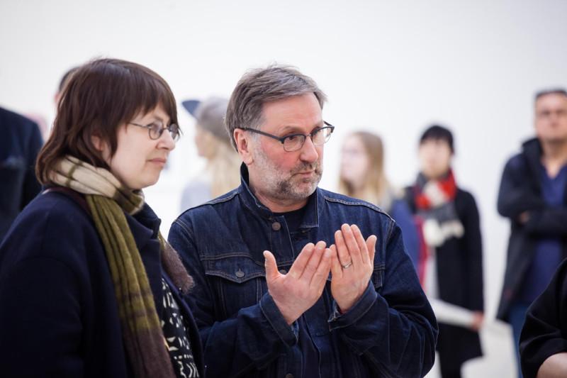 KKKC Parodų rūmuose (Didžioji Vandens g. 2, Klaipėda) iki 2018 m. gegužės 5 d. eksponuojamoje Agnės Jonkutės ir Remigijaus Treigio fotografijos ir tapybos parodoje „Išlaukti vaizdai” menininkai pristato naujausius, 2017–2018 m. sukurtus darbus: Agnė Jonkutė – tapybos ir fotografijos ciklą „Žemė”, Remigijus Treigys – fotografijų ciklą „Žiemos dienoraštis”. ![]() Parodos „Išlaukti vaizdai“ atidarymas. Remigijus Treigys ir Agnė Jonkutė. Kairėje – Agnės Jonkutės „Mamos žemė“ (drobė, aliejus, 2017 m.). Nerijaus Jankausko nuotr. Skirtinguose miestuose gyvenančių, virtualiai bendraujančių ir tik retkarčiais įvairiose parodose susitinkančių menininkų kūrybą jungia spalvinė gama, kompozicija, bet labiausiai – ramybė ir laukimo atmosfera, perteikta per miglas, tuštumas, išsitrynusius daiktų kontūrus. Ir užsibuvimas, užtrukimas prie vieno vaizdo, vieno objekto. Prieš parodą Agnė, paprašyta trumpai apibūdinti jos esmę, atsiuntė poetinį tekstą, tapusį visos parodos leitmotyvu: Žvejas moka išlaukti: ryto, vakaro, žuvies. Parodoje „Išlaukti vaizdai”, regis, išlaukta viskas: ir menininkų kūrybinė partnerystė, ir tyrinėjimų objektai, nesitarus ir tarsi visai atsitiktinai atsirandantys abiejų kūriniuose, ir netgi pati parodos ekspozicija. Ją menininkai kūrė tarsi dar vieną paveikslą: iš pradžių ilgai stebėjo tuščią erdvę, užpildę ją kūriniais vėl ilgai stebėjo. Po to kai kurie kūriniai iš parodų salės sugrįžo į užkaborius. Galiausiai dingo ir etiketės, liko tik ant popieriaus atspausdintas planas. Ekspozicija tapo minimalistiškai švari ir iki skambesio išgryninta. Išlaukta. Pasikalbėti apie parodą su menininkais Agne Jonkute ir Remigijumi Treigiu susitikome, kai ekspozicija dar tik buvo pradėta kurti. Prie mūsų prisijungė ir Klaipėdos kultūrų komunikacijų centro direktorius, menotyrininkas Ignas Kazakevičius. Tiesą sakant, jų trijų pokalbis buvo toks betarpiškas ir intensyvus, kad, laužant žanro taisykles, net nesinorėjo jo pertraukti klausimais – tik klausytis ir fiksuoti. ![]() Parodos „Išlaukti vaizdai“ atidarymas. Iš kairės: menininkai Remigijus Treigys, Agnė Jonkutė ir KKKC direktorius, menotyrininkas Ignas Kazakevičius. Nerijaus Jankausko nuotr. Trimakas vs Treigys Kaip susikūrė Jūsų duetas? Ignas: Agnė pirmiausiai pradėjo dirbti su Gintautu Trimaku. Kodėl būtent su Trimaku, o ne su Treigiu? Agnė: Nes taip susiklostė aplinkybės. Susitikdavome parodose ir kartą Gintautas užsiminė apie bendrą parodą. Užsikabinau už tos minties, bijojau, bet kartu ir džiaugiausi. Rezidentūros Abu Dabyje metu vaikščiojau po Liva dykumą su popieriukais, dėliojau juos lauke, norėdama įrašyti tos vietos peizažą. Man visą laiką norėjosi įrašyti peizažą – ne save, o peizažą, tokį, koks jis yra. Taigi dykumoje vaikščiojau su lapais, prispausdavau juos smėliu, kad vėjas nenupūstų, ir po kiek laiko juose užsirašė šviesa – tos vietos šviesa, t. y. Ta šviesa. Tada pagalvojau, kad mes su Trimaku darome tą patį – jis irgi įleidžia ir užrašo šviesą. Dėl to ir įvyko bendra paroda, netgi dvi… O kadangi Treigį su Trimaku vis tiek visi maišo… Turbūt ir aš kažkada maišiau (juokiasi). Ignas: O kodėl maišo? Remigijus: Gal kad pavardės panašiai prasideda… Agnė: Manau, ne tik dėl to. Man atrodo, abiejų darbuose yra kažkoks bendras vardiklis. Gal tai emocinė švara ir šviesa? Paviešinti dienoraščiai Ignas: Remigijau, tave taip pat domina šviesos užrašymas? Tavo dienoraščiai – kas tai yra? Tai asmeninės nuotaikos ar vis dėlto atmosferos, kuri yra aplinkui, fiksavimas? Remigijus: Ir nuotaikos, ir atmosferos. Mano ciklas vadinasi „Žiemos dienoraštis”. Dienoraščius aš kūriau ir anksčiau. Tai tarsi mano dienos pastebėjimai. Bet tai, ką rodome šioje parodoje, – tiek mano kūryba, tiek Agnės, yra daugiau autobiografija. Tai asmeniniai vaizdai, išreikšti per savus pojūčius, pamatymus. Paprastai dienoraštis būna skirtas tik sau. O šiuo atveju jie yra paviešinami. Man tie užfiksuoti vaizdai sukelia vienus prisiminimus, tačiau žiūrovui jie gali sukelti visai kitas emocijas. Nes kiekvienas matome labai asmeniškai. Ignas: Bet šioje parodoje beveik nieko nematyti: Treigio fotografijos patamsėjusios, iš Agnės Jonkutės darbų dingo motyvai. Susidaro įspūdis, kad jūs to motyvo vis dar laukiate. Savo tekste apie parodą Agnė rašė: „Bus besikartojančių horizontų, nes abu tos linijos ieškom ar laukiam, bus ir daiktų, nežymiai atsirandančių iš tamsos ar šviesos, bus sidabro, Balt Salt spalvos ir dar šiek tiek kitų spalvų, atsiradusių iš fotografijos. Bus daug tuštumų, rūkų ir neaiškumų. Ir tylos.” Ar tai reiškia, kad šios parodos koncepcija turės tęsinį? Remigijus: Manau, kad tęsinys gali būti. Dienoraštis dažniausiai tęsiamas… Galima jį tęsti kada nors ateityje, bet galima pratęsti ir dabar. Šiuo atveju ne visi darbai bus parodyti, nes darome minimalistinę ekspoziciją. Norisi išgryninto ekspozicijos vaizdo ir estetikos – neperkrautos, su tam tikromis pauzėmis. Agnė: Kad atlieptų tą laukimo nuotaiką… ![]() Parodos „Išlaukti vaizdai“ atidarymas. Remigijaus Treigio „Gulbės“ (fotografija, 2018 m.). Nerijaus Jankausko nuotr. Bendrumai Ignas: Kai gimė šios parodos idėja, tikėjausi, kad derinsitės vienas prie kito kūrinių. Supratau, kad bendrų darbų jūs nekursite, kad derinimasis vyks, pavyzdžiui, per užfiksuotus panašius objektus. Pristatydama parodą Agnė rašė, kad abu turite po kūrinį su lova. Todėl pamaniau, kad galbūt daiktai taps bendros ekspozicijos jungtimi, tarkim, koks nors užuolaidos fragmentas ar buto kertė… Tačiau to parodoje nėra. Norėčiau paklausti Agnės: kiek reikėjo taikytis prie Treigio, kad pratęstum jo atmosferinius ieškojimus? Agnė: Man atrodo, kad gera