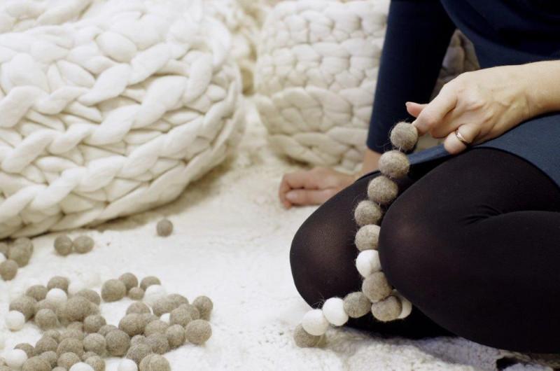 Lina: Vilna sumegzta taip, kad būtų kuo tvirtesnė, atsisėdus neplyštų, neirtų, nedūlėtų, ir po to suvelta – dvigubai sutvirtinta. Tai iš praktikos atėjęs sprendimas – kad objektai būtų ne tik dėl grožio, bet ir tikrai naudojami.