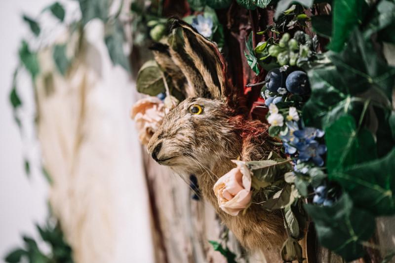 Ieva M.: Mūsų dėstytojas Kęstutis Zapkus labai skatino domėtis savo išgyvenimais ir juos užsirašinėti. Tai tarsi savęs psichoanalizė. Visi svarbūs įvykiai iškilo, aš juos užrašiau ir nusprendžiau, kad tas istorijas galiu panaudoti mene. O triušio istorija buvo tokia: kaime pas senelius, kur leisdavau vaikystę, tėvas atnešė man mažą triušelį. Tai buvo pirmas mano gyvūnėlis. Tačiau tais laikais niekas negalvojo, kad triušelis gali būti tik džiaugsmui. Kai jis užauga, tampa kažkam nepatogus, reikia jį suvalgyti, kaip įprasta kaimo žmogui. Aš nenoriu nieko kaltinti, bet man, vaikui, to triušelio nužudymas buvo trauma. Kai išgirdau jo cypimą, kilo baisi nuojauta, kad jam kažkas atsitiko… Senelis buvo tas žmogus, kuris rūpindavosi maistu – kai reikėdavo, jis pjaudavo vištas, kiaules. Ir niekas manęs net nepaklausė, tiesiog jį papjovė, nulupo kailį, paruošė maistą ir dar sakė: valgyk. Atsimenu, labai priešinausi, verkiau ir nenorėjau jo valgyti. Štai tokia istorija. Šiam triušiui atminti sukūriau du darbus. Pirmasis buvo tapybos darbas „Triušio skerdynės” su tekstu, po to jis transformavosi į kitą idėją – kūrinį „Skirta miegamajam” su mano pačios kūno atliejomis. Būdavo toks gipsinis bintas, labai mėgau su juo daryti savo pačios atliejas. Man patiko jungti skulptūrą su tapyba. Tame darbe – mano veidas su iškamšoms skirtomis akimis, kiškio iškamša – vėl prisimenant tą vaikystės triušį. Kartu atkreipiau dėmesį į tą faktą, kad vyrai kartais vadina moteris „kiškučiais”. Tame darbe keliu klausimą: kas yra grožis? Kažkam gražu pasikabinti trofėjus, o ir moterys tampa trofėjais miegamuosiuose. Todėl ir sukūriau tokį ironišką darbą: pasikabinkite miegamajame (juokiasi).