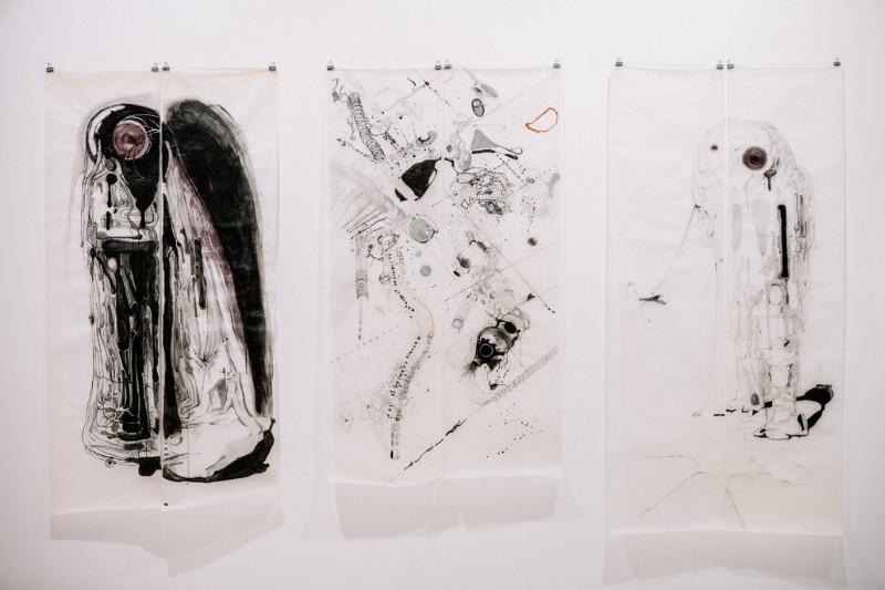 Ieva M.: Kartais būna taip, kad galvoji: ai, gal neverta jų eksponuoti, gal jie prasti ir reikia sunaikinti… Esu daug darbų sunaikinusi, kai po kažkiek laiko nusprendžiau, kad geriau jų nelaikyti. Bet šitie darbai atrodė visiškai geri. Ir netgi truputį sau užpavydėjau, pagalvojusi, kad gal kai kurie netgi geresni už dabartinius (juokiasi). Čia, aišku, klausimas, bet jie man padeda pamatyti, kaip toliau tęsti savo kūrybą.