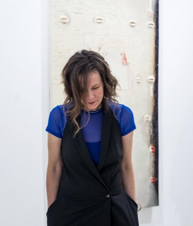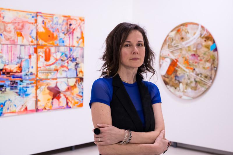 Menininkė Ieva Martinaitytė-Mediodia šalia paveikslo „Technoself“. Nerijaus Jankausko nuotr.