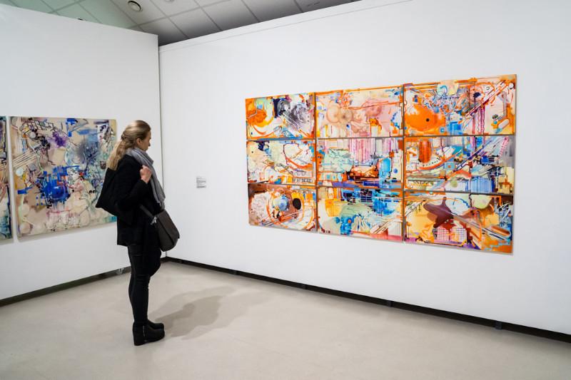 Pokalbio su menininke Ieva Martinaityte-Mediodia ir parodos kuratore Laima Kreivyte susitikome pačiame parodos instaliavimo įkarštyje. Plaktuko poškėjimas, grąžto dūzgimas, paveikslus kabinančių vyrų šūkčiojimai kviečiant pažiūrėti, ar darbas pakabintas tinkamai, – visas šis bruzdesys sukūrė tokią dinamišką atmosferą, kad rodės, jog visas Ievos paveikslų futurizmas išsiveržė į parodų rūmų sales, o pašnekovės lyg tos neuronų ląstelės ar asteroidai nuolat migravo nuo jau pakabintų paveikslų prie dar kabinamų, trumpam nurimdamos, kad atsakytų į klausimus ar papasakotų istoriją. Viso šio chaoso rezultatas – paprastas pokalbis apie nepaprastus dalykus. Ir, žinoma, įstabi Ievos Martinaitytės-Mediodios solo parodos „Ievos išvarymai” ekspozicija, kurią aplankyti galima iki vasario 23 dienos.