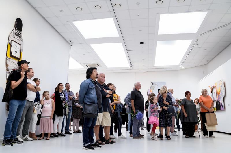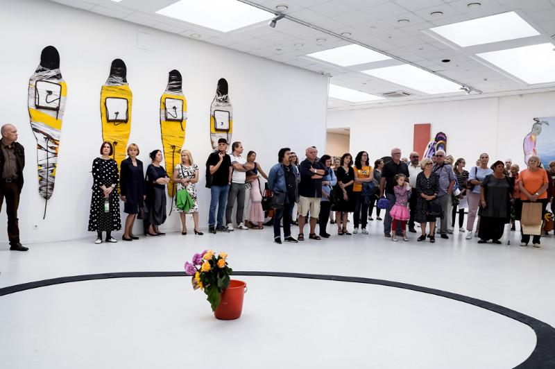 KKKC Parodų rūmuose (Didžioji Vandens g. 2, Klaipėda) iki 2019 m. rugsėjo 1 d. veikia Romo Klimavičiaus kūrybos paroda „Pasmerkti būti laimingais”. Klaipėdietis viduriniosios kartos menininkas R. Klimavičius įvairiose galerijose parodas rengia vos ne kasmet. Parodoje „Pasmerkti būti laimingais” jis pristato per dvidešimt iki šiol visuomenei nepristatytų didelio formato darbų, sukurtų per dvi vasaras. Menininkas patikslintų – dvi labai laimingas vasaras. Gal todėl ekspozicija švyti ryškiomis spalvomis? Kuo tos vasaros buvo ypatingos ir kas menininką padaro laimingą – pokalbis su parodos autoriumi Romu Klimavičiumi. Esate tarpdisciplininis menininkas, kuriate ir objektus, ir paveikslus, ir grafikos darbus. Kokiam žanrui priskirtumėte kūrinius, eksponuojamus parodoje? Nežinau, kaip įvardyti – ar čia tapyba, ar plastiniai dalykai. Man sunku į tokius klausimus atsakyti, nes pats nežinau, kaip juos įvardyti. Ir aš nesistengiu. Kas dabar vadinama grafika? Kai kūrinys atspaudžiamas ant drobės aliejiniais dažais, kas tai yra – tapyba ar grafika? Viskas, kas spaudžiama nuo klišės, vadinama grafika. Bet kai spaudžiama ant drobės, vadinama tapyba… Arba keramika: yra keramikos objektas, o kada jį galima jau vadinti skulptūra? Tos ribos labai plonos, nelabai gali įvardyti… Nevaidinu nei tapytojo, nei skulptoriaus. Mano tokia pozicija. Kada buvo sukurti šie darbai? Tai yra dviejų mano vasarų darbas. Viena vasara buvo Tiltų gatvėje Klaipėdoje, kita – Palangoje, dailininkų kūrybos namuose. Ar tų dviejų vasarų darbus kas nors sieja tarpusavyje? Niekas. Jei parodą pavadinote „Pasmerkti būti laimingais”, vadinasi, tas dvi vasaras buvote labai laimingas? Aišku! Kad tik kolegos neužpyktų (juokiasi). Kas gali turėti tokias sąlygas kurti ir nebūti laimingas?! Tiltų gatvėje šeimininkai man atidavė visai vasarai patalpą ir ten buvau įsirengęs studiją. Kai dirbi ir eksponuoji darbus beveik ant gatvės, kiek sulauki lankytojų ir pirkėjų! Tai idealios sąlygos dailininkui! Taip visada turėtų būti, bet taip gyvenime nebūna. Kaip sapnas! O kitą vasarą Palangos kūrybos namuose kelių šimtų kvadratų patalpoje buvau aš vienas! Argi nelaimingas? Laimingas! Patalpos darbui – tobulos: apšvietimas, aplinka, šiluma, kolektyvas puikus, jūra, su dviratuku nuvažiuoji, išsimaudai. Pirmą sykį gyvenime maudžiausi po keliolika kartų per dieną. Ir darbas visai kitas. Nusiperki dažų ne tūbelėmis – kibirais… Viskas kitaip – kiti formatai, kitos galimybės… O to ir užtenka menininkui iki pilnos laimės? Man – taip. Svarbiausia, kad būtų dažų. Vienas dalykas, kai nusiperki tūbelę ir galvoji, kaip užtepti, kad užtektų tam drobės plotui, o kitas dalykas, kai yra daug kibirų dažų ir merki teptuką nežiūrėdamas… Kaip manote, ar tas laimės pojūtis atsiskleidė darbuose? Ne ne, jokiu būdu! Aš galvoju, pavyzdžiui, kaip aktorius: kuria vaidmenį ir todėl yra laimingas. Bet tas vaidmuo gali būti tragiškas! Taip ir su mano paveikslais – stengiuosi nedaryti saldumynų. Nerodyti savo vidinės būsenos. Darbai yra visai nesurišti su laime, jie nėra gražūs, nėra pritaikyti papuošti interjero. Iš kur ateina tokių darbų idėjos? Kaip gali papasakoti apie eilėraščio rašymą? Viskas priklauso nuo nuotaikos. Su tavim, pavyzdžiui, išsiskiriam, nueinu ir kažkokį įspūdį ant plokštumos perkeliu. Bet visai nesurištą su tavim. Surištą tik tuo, kad po susitikimo su tavim dariau, bet visai ne tave vaizdavau. Taip ir paveikslai – iš kažkur atsiranda ant tos plokštumos tie baisūs savo forma daiktai. Bet parodoje juos lydi sakraliniai tekstai, pakeliantys darbus į visai kitą lygmenį… Taip, juos įvilkau į sakralinį tekstą. Ir išėjo labai gražiai, viskas pasiteisino. Iš kur tie tekstai? Iš Švento Rašto paėmiau citatas ir jas pritaikiau savo paveikslams – kaip aš supratau, kad jam tinka. Ir išėjo kontrastas. Pavyzdžiui, tapiau Palangoje besišlapinantį zuikį. Suaugęs vyras aktorius, persirengęs zuikiu, leidžia čiurkšlę į Baltijos jūrą. Šlapimas bėga į vandenį, aktoriaus veidas – be mimikos, atgręžtas į žiūrovą. Pavadinau šį paveikslą „Sūnus palaidūnas” ir parinkau citatą iš Šv. Rašto: „Dieve, dėkoju Tau, kad visada išskėstomis rankomis priimi pas Tave grįžtančius skarmalais prisidengusius ir pasaulio purvu išsitepusius savo vaikus.” Atitiko taip, kad geriau nesugalvosi. Spontaniškai išėjo žaidimas. Jums svarbu žaisti? Taip, nes viskas yra žaidimas. Bažnyčioje taip pat vyksta savotiškas spektaklis: kunigai tarsi aktoriai, apsirengę sceniniais kostiumais, naudojama muzika, vaidyba, scenografija. Vyksta šventas aktas. Bet ir aš darau „grieką”, ir kunigai nusideda – nėra nė vieno nenusidėjusio žmogaus. Taip ir mano darbai: juose – nuodėmių atspindžiai, ir tomis citatomis aš bandau tas negeroves ar išrišti, ar kaip… Nei gąsdinu, nei mokau, nei aiškinu, bet tą, ką aš darau, yra žmogiška. Svarbiausia – pasirinkimas, kaip gyventi. Kai laikaisi vairavimo taisyklių, viskas eina nuostabiai. Jei viršiji greitį ar kitaip jas pažeidi – pats esi kaltas, tu pats taip pasirenki. Taip ir su dešimčia Dievo įsakymų. Toks yra žaidimas. Ir tas mano kalbėjimas ant plokštumų nėra nei grožio demonstravimas, nei proto – toks yra veiksmas, taip aš save išreiškiu. Kaip Benas Šarka judesiu išsireiškia – ar gali papasakoti, kaip tai sugalvojo ir ką norėjo pasakyti tuo judesiu? Tokius dalykus turi daryti menotyrininkai, o pačiam yra sunku kalbėti apie savo kūrybą, galiu nupasakoti tik atraminius dalykus. Kas dar Jums svarbu? Laikas. Kas yra laikas čia ir kas yra laikas ten? Kas yra laikas apskritai? Mes dabar sėdim, bet ką aš pasakiau prieš tris minutes – jau yra praeitis. Tokie žaidimai. Bet yra taisyklės, nori – laikaisi jų, nori – nesilaikai. Nori