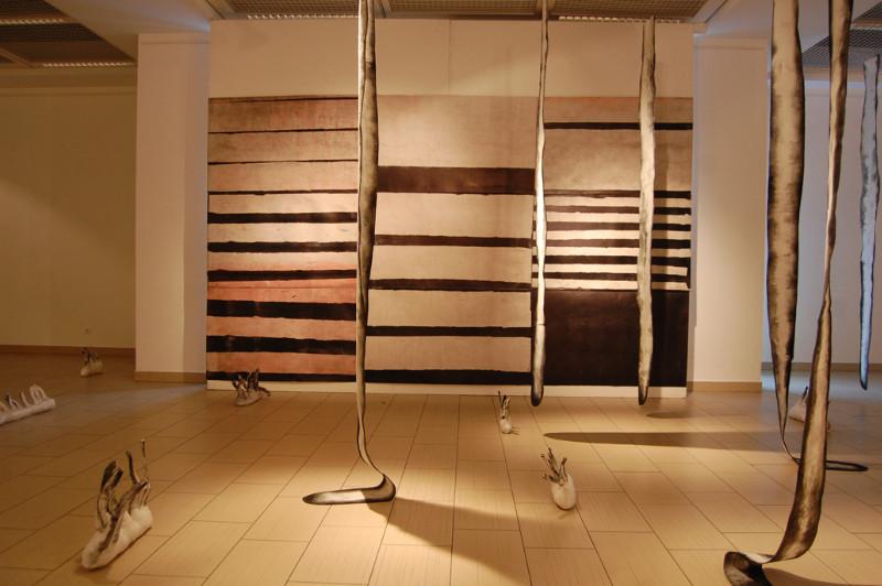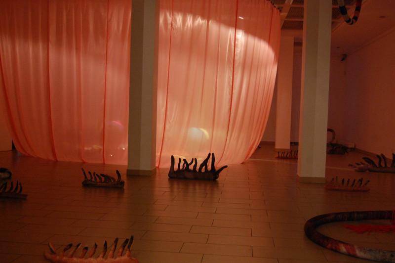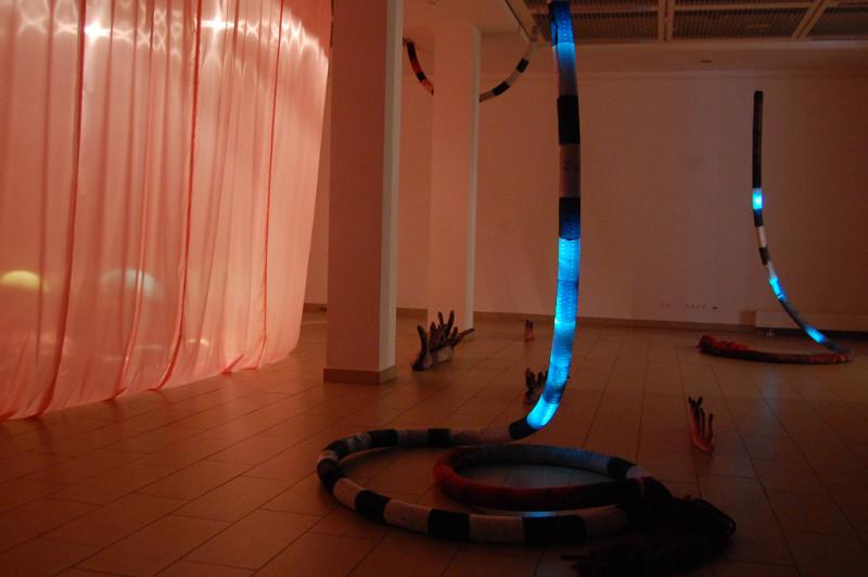 Vasario mėnesį Vilniuje, VDA muziejaus parodų salėse „Titanikas”, eksponuojama Klaipėdoje kuriančios menininkės Žanetos Jasaitytės-Bessonovos paroda „Tarpininkavimo santykiai: mano kūnas tavyje”. Šis tęstinis eksperimentinis projektas pirmą kartą buvo pristatytas KKKC Parodų rūmuose 2017-ųjų rugpjūtį, po to dar nukeliavo ir į Portugaliją. Inovatyvus proveržis Eksperimento esmė ne tik ta, kad menininkė bando įsileisti parodos lankytoją į savo kūną. Kita eksperimento pusė – kad visus eksponatus galima liesti. Klaipėdoje kai kurie parodos lankytojai šį pasiūlymą suprato tiesiogiai ir ekspozicijų salėse leido savo atžaloms elgtis tarsi kiemo žaidimų aikštelėje. Ne visi iš tekstilės sukurti objektai sėkmingai atlaikydavo tokią vaikų pažintį su menu, todėl Ž. Jasaitytei-Bessonovai tekdavo taisyti suniokotus kūrinius. Tačiau menininkė buvo atkakli ir neatsisakė minties savo instaliacijų skirti mažųjų parodos lankytojų taktiliniams pojūčiams ir muzikinei klausai ugdyti. Paklausta, kodėl iki tol daugiausiai grafikos abstrakcijas kūrusi Ž. Jasaitytė-Bessonova ryžosi kardinaliai keisti kūrybos pobūdį, menininkė neslėpė – šiam projektui ją subrandino motinystė: su savo pakilimais ir nuopuoliais, nuovargiu ir džiaugsmu, ambicijomis kurti ir laiką pasiglemžiančia buitimi. Šešerius metus besikaupusi kūrybinė potencija prasiveržė dideliais objektais – kitaip, pasak menininkės, ji nebūtų galėjusi judėti pirmyn. Turėjusi išsilieti, atskleisti savo esatį. Ekspozicijoje ji nebijo būti atvira, nebijo apnuoginti, atverti savo slapčiausias pajautas, kviesdama žiūrovą į pasaulį, kurį ji kūrė tarsi tik sau ir savo asmeniniams santykiams. Šį pasaulį menininkė atskleidžia inovatyviai, grafikos kūrinius transformuodama į trimačius objektus. Atspausdinta ant įvairių paviršių, grafika tampa interaktyviomis instaliacijomis, pripildytomis muzikos garsų, vibracijų. Didelio formato architektūriniai objektai tarsi vartai vilioja įžengti į nepatirtą pasaulį ar įsmukus į vidų pasislėpti. Autorės teigimu, „parodoje viską galima ir būtina liesti – nuo grafikos atspaudų lakštų iki muzikiniu skambesiu papildytų kamuolių, improvizuojančių jutiminius jausmų sąskambius motinos įsčiose”. Pasak menotyrininkės Danguolės Ruškienės, „Žaneta kalba ne tik apie save, ne tik apie ją užklupusius lig šiol nepatirtus džiaugsmus ir išbandymus. Ji savo apmąstymus universalizuoja, apibendrina iki simbolių ir pateikia kaip išeities taškus, iš kurių išsirutulioja bendražmogiškos pajautos. Ir tada kalbama jau ne tik apie ją, jos šeimą, artimiausią aplinką, bet apie momentus, kurie aktualūs visiems – kiek gali savęs atiduoti kitiems, kad išreikštum savo meilę, bet galutinai savęs neprarastum. <…> Atraktyvus interaktyvaus pobūdžio kūrinių pateikimas žiūrovui pasiūlo iš pirmo žvilgsnio nerūpestingą žaidimą. Tačiau, kuomet pradedama gilintis į temą, iš po šio žaismingo apvalkalo pradeda ryškėti žymiai gilesni ir jautresni dalykai – ne tokie optimistiški apmąstymai ir naujos, ne visuomet džiuginančios patirtys. Ištisos jų virtinės, kurios traukia į save, verčia jas tyrinėti. Ir tik tada įmanoma pajusti visą realaus gyvenimo spalvų spektrą – nuo naujai patiriamos motinystės laimės ir džiaugsmo iki globėjiško rūpesčio, nerimo ir galiausiai – abejonių” (cituota iš: www.gargzdai.lt/amzini-desniai-ir-kintanti-realybe/). ![]() Žanetos Jasaitytės-Bessonovos parodos „Tarpininkavimo santykiai: mano kūnas tavyje“ fragmentas Vilniuje, VDA parodų salėse „Titanikas“. Ž. Jasaitytės-Bessonovos nuotr. Netyrinėti pojūčiai Po parodos Klaipėdoje projektas, tiesa, mažesnės apimties, buvo eksponuotas Portugalijoje, Porto mieste esančioje „Serpente” galerijoje, su kuria Ž. Jasaitytė-Bessonova bendradarbiauja nuo 2005 m. Vasario 2–25 d. paroda „Tarpininkavimo santykiai: mano kūnas tavyje”, papildyta ir patobulinta, pristatoma Vilniuje, VDA muziejaus parodų salėse „Titanikas”. Apie projekto raidą, sėkmes ir nesėkmes, kelionę po pasaulį bei ateitį su menininke kalbėjomės prieš jo pristatymą „Titanike”. – Jūsų projektas „Tarpininkavimo santykiai: mano kūnas tavyje” analizuoja santykį tarp moters ir vyro, tarp motinos ir vaiko, bet labiausiai – moters santykį į save. Ar tęsiant projektą ši mintis išlieka? – Išlieka. Tęsiu tą pačią mintį, tik dabar jau labiau gilinuosi į šios temos detales. Pradėjau domėtis moksliniais straipsniais, susijusiais su motinystės tema, su nėštumu, laukimu, vaikų ugdymu. Ir tyrimais apie besilaukiančių moterų pojūčius. Pasirodo, kad tie pojūčiai labai mažai ištirti, apie tai labai mažai šnekama. Neseniai perskaičiau labai įdomią disertaciją ir mane sudomino ta tema. Norėčiau į ją pažvelgti labiau iš teorinės pusės, turėti daugiau žinių apie tai, kaip jaučiasi kitos moterys. – Kalbate apie fiziologinius ar psichologinius pojūčius? – Ir fiziologinius, ir psichologinius – viską kartu. Nes yra ištirta tik ginekologinė dalis. O visa kita – fiziologiniai, psichologiniai besilaukiančios moters pojūčiai nėra daug tyrinėti. – Motinystės tema, panašu, Jus visiškai pakerėjo. Parodoje daug objektų, kuriuos Jūs siejate su moters organizmu. Kaip juos įvardytumėt? – Daugelį jų aš vadinu virpesiais. Jie yra tokių formų, kokie, mano suvokimu, turėtų būti virpesiai. Tu juos gali liesti ir jie kelia tarsi virpesio pojūčius. Nes viskas turi apimtį. Netgi tas pats mano naudojamas veltinis turi apimtį. Kitus objektus vadinčiau jausenomis, pavyzdžiui, susiskleidžiančius delnus ar įėjimo vartus. Jie yra veikiantys, nes per vieną objektą tu įeini, nori nenori turi pro jį praeiti. Tai įžanginis dalykas, kaip ir man pačiai buvo įžengimas į tą kitokį pasaulį, 