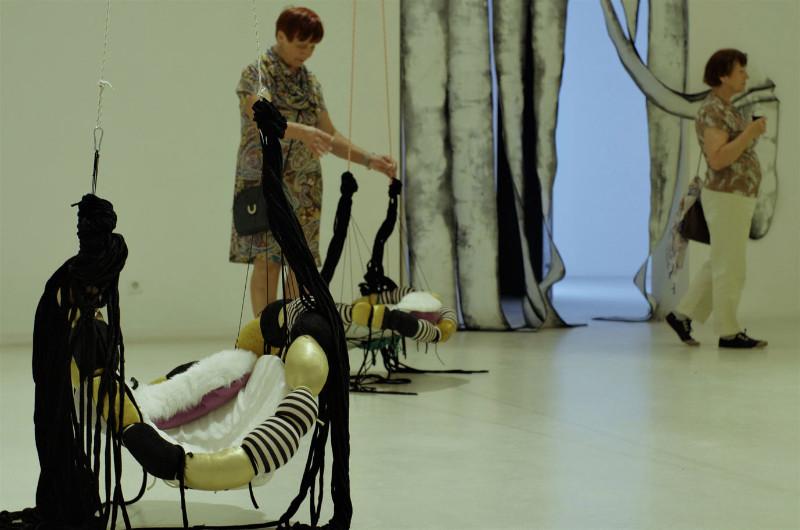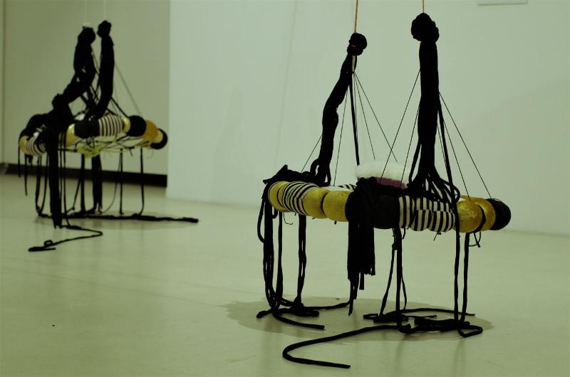 Ryškių objektų Jūsų parodoje labai daug, pavyzdžiui, nuo palubės nutįsę ryškiaspalviai… Kaip Jūs juos įvardintumėte?