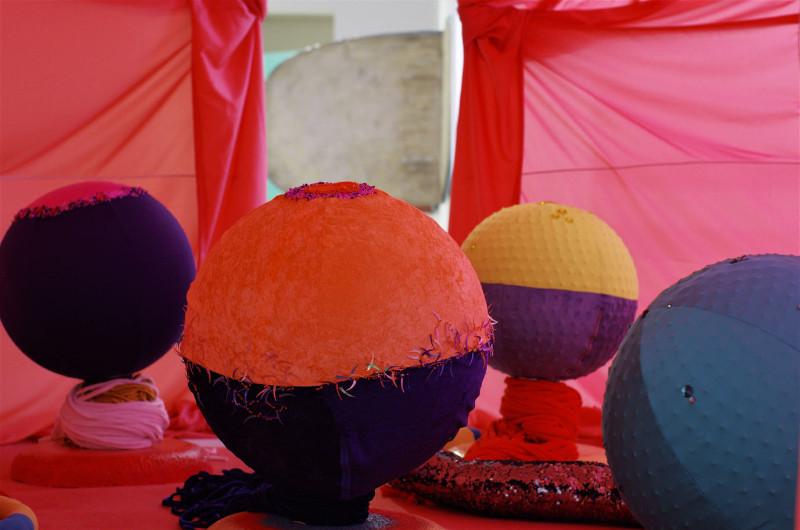 Kitoje salėje esantis dar vienas didelis ryškiaspalvis objektas – tarsi maža slėptuvė. Kokią prasmę jis slepia?