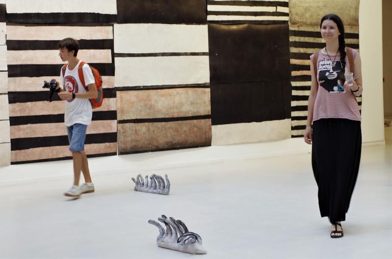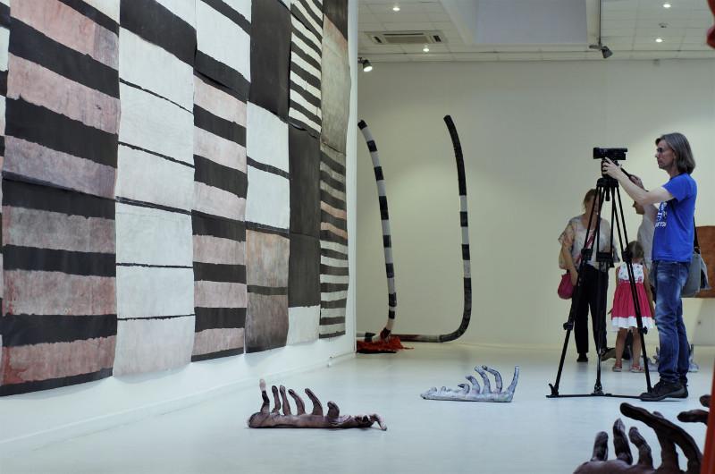 Taip taip, muzika – Kęstučio Venskūno, ji užpildo visą erdvę ir sukuria bendrą parodos atmosferą. Sukuria visumą. Apskritai aš nekreipiu dėmesio į smulkmenas – man svarbu, kad būtų visuma. Jei visuma yra – aš patenkinta. Šioje parodoje visuma yra. Yra ir daug neužbaigtų, eksperimentinių momentų, bet visuma yra.