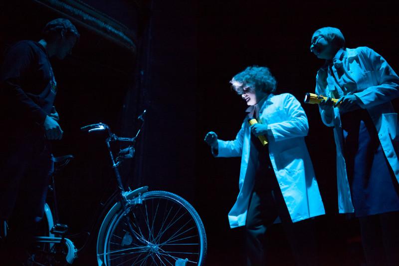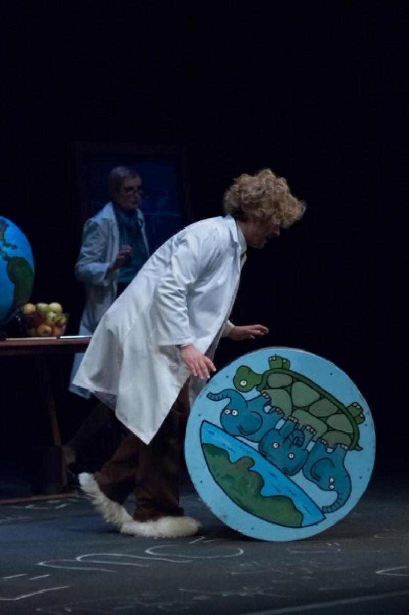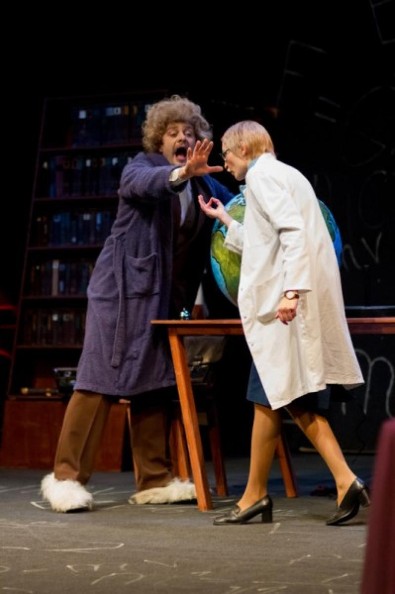 ![]() Sigita Pikturnaitė. „AA Studio“ nuotr. Klaipėdos universiteto bei Lietuvos muzikos ir teatro akademijos absolventė Sigita Pikturnaitė, pernai Lietuvos rusų dramos teatre debiutavusi su edukaciniu naujojo cirko spektakliu „Linksmoji Einšteino laboratorija“, šiuo metu brandina tris temas naujiems pastatymams. „Renku informaciją, ruošiu scenarijus, kadangi vaikiškai auditorijai skirtos dramaturgijos pasiūla yra tuščia niša. Noriu, kad vaikai teatre galėtų ne tik prisiminti pasakų ar kitokių knygų siužetus. Juk jas galima pasiskaityti namie! Teatras turi kelti klausimus, audrinti emocijas“, – įsitikinusi ji. Su Sigita susipažinome dar studijuodamos Klaipėdos universitete bei drauge spėjome patekti į beveik dešimtmetį (2000–2009 m.) gyvavusio Vytauto ir Veltos Anužių studentų teatro „Dramos klasė“ epochą. Šiuo metu netikėtai tapome kaimynėmis – gyvename netoli Vilnelės. Baigiantis žvarbiam sausiui, susėdame delnais apglėbusios šildančius arbatos puodelius. Sužinau naują faktą, kad ji nemėgsta žaliosios, bet tarp arbatžolių atsargų surasta skrudinta matė pasirodo visai tinkama alternatyva. Karšto gėrimo ritualas paskatina pokalbį apie jaunos režisierės debiutą – edukacinį naujojo cirko spektaklį „Linksmoji Einšteino laboratorija“, kurio premjera įvyko pernai vasarą. Pirmąjį klausimą pasufleruoja citata iš spektaklio, kuris nuo rudens įtrauktas į Lietuvos rusų dramos teatro repertuarą – kodėl žmonės taip skuba žengti į mėnulį, siekia jį ištyrinėti, užuot artimiau susipažinę su savo kaimynu, šalia kurio gyvena visą gyvenimą? Papasakok apie savo teatro ligą ir kelią aktorės karjeros link. Mokyklą lankiau Vidurio Lietuvos miestelyje, kur gyvena mano šeima. Pasišventusi piešiau, tad manyje visi regėjo būsimą Dailės akademijos studentę. Baigdama gimnaziją visų nuostabai apsisprendžiau studijuoti aktorystę, bet iš pirmo karto neįstojau. Tuomet pasirinkau lietuvių filologijos ir režisūros studijas Klaipėdoje, V. ir V. Anužių kurse, puoselėdama mintį, kad po metų vėl bandysiu laimę Vilniuje. Bet įsimylėjau savo dėstytojus ir pasilikau pajūryje. Vėliau – teatrologijos studijos, pedagogės darbas. Nors savęs niekada neįsivaizdavau mokytojos amplua, tačiau vadovavimas Klaipėdos vaikų laisvalaikio centre suburtai vaikų teatro trupei, manau, suteikė abiems pusėms vertingos patirties. Atsidėti vien mokytojos darbui nesijaučiau visiškai subrendusi, tad pasiryžau naujai bandyti sėkmę aktorystės srityje. Nutariau vėl stoti į Lietuvos muzikos ir teatro akademiją. Vilčių daug neturėjau – priimant į magistro studijas pirmenybė dažniausiai teikiama saviems studentams. Įstojau į Jono Vaitkaus kursą. Studijos daug naujos patirties ir galimybių surasti savo vaidmenis scenoje nesuteikė. Tačiau Vilniuje daugiau erdvės išreikšti aktorės pašaukimą. Čia dažniau tenka susidurti su darbu filmavimo aikštelėje. Prieš atsiimdama išsvajotąjį aktorės diplomą Vilniuje spėjai debiutuoti kaip režisierė. Per tuos dvejus metus supratau, kad labai svarbu būti iniciatyviai ir nepritrūkti drąsos įgyvendinant savo pačios sumanymus. Pagaliau buvo apsispręsta imtis senos idėjos realizavimo. Dar gyvendami Klaipėdoje drauge su aktoriumi Viačeslavu Mickevičiumi pradėjome fantazuoti, kaip būtų puiku pastatyti spektaklį apie fiziką Albertą Einšteiną. Šia idėja susirgome ir kliedėjome keletą metų, bet pajūryje pritrūkome pasitikėjimo ir ryžto ją įgyvendinti. Neradome tinkamos erdvės ir sąlygų, nebuvo patirties, paskatinimo. Vilniuje tiesiog atsirado daugiau drąsos, laiku susibūrė tinkami žmonės. Procesas ir pasiskirstymas vaidmenimis bei užduotimis susidėliojo natūraliai. Viačeslavas jau tarsi buvo susikūręs vaidmenį, Sandra Latanauskaitė su pantomimos patirtimi puikiai tiko į kompaniją, tad man beliko viską apjungti bendram tikslui ir prižiūrėti procesą iš šalies. Todėl šįkart likau kitoje rampos pusėje negu visuomet svajojau. Viačeslavas prieš kelerius metus su savo individualia programa buvo pakviestas vesti mokyklos išleistuvių vakaro. Renginio temai ir savo triukams pristatyti jis pasirinko žinomą personažą – A. Einšteiną. Besiruošdamas renginiui jis taip susižavėjo mokslininko asmenybe, jog ėmė svarstyti būdus, kaip būtų galima viename spektaklyje apjungti tris, iš pirmo žvilgsnio skirtingus, bet tarpusavyje labai daug bendro turinčius polius: fizikos mokslą, Einšteino asmenybę ir cirko triukus. Galiausiai mano buvusi kurso draugė, pantomimos aktorė Sandra, kuri spektaklyje sukūrė mokslininko asistentės vaidmenį, pareiškė: „Rašom projektą – jeigu gausim finansavimą, tuomet būtinai darom!“ Ji kurį laiką su iliustratore Rasa Joni vesdavo edukacinius animacijos užsiėmimus, tad pasiūlė pasinaudoti viešosios įstaigos statusu ir paprašyti lėšų spektaklio įgyvendinimui. Rasa Joni mus konsultavo scenografijos klausimais, nors jau iš anksto žinojome, jog mūsų dekoracijos ir rekvizitas turi būti ne tik dekoratyvūs, bet ir funkcionalūs – tikti kaip akrobatinių triukų elementai. Beje, Rasa Joni pasiūlė įdomų sprendimą, iliustruojantį A. Einšteino reliatyvumo teoriją. Laboratorijos baldai – kėdės, stalas, lentyna – yra šiek tiek pasvirę, atrodo kreivi, tačiau visiškai nepraradę savo paskirties. Taip pat Rasa sukūrė labai įdomias spektaklio programėles, kurios drauge yra puikus galvosūkių ir užduočių rinkinys. ![]() Spektaklis „Linksmoji Einšteino laboratorija“. „AA Studio“ nuotr. Papasakok apie kūrybinį procesą. Nebuvo sunku atsirinkti informaciją ir atgaivinti scenoje ikona tapusį mokslininką? Užduotį sprendėme labai paprastai. Mus įkvėpė cirko žanras, pasirinkome edukacinį pobūdį – nutarėme vaizdingai ir žaismingai iš(si)aiškinti fiziką. Tuomet natūraliai atėjo e